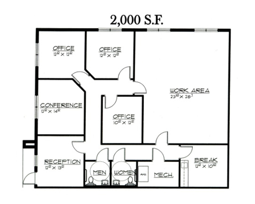 2,000 SF Rental Rate: $18/SF/Year